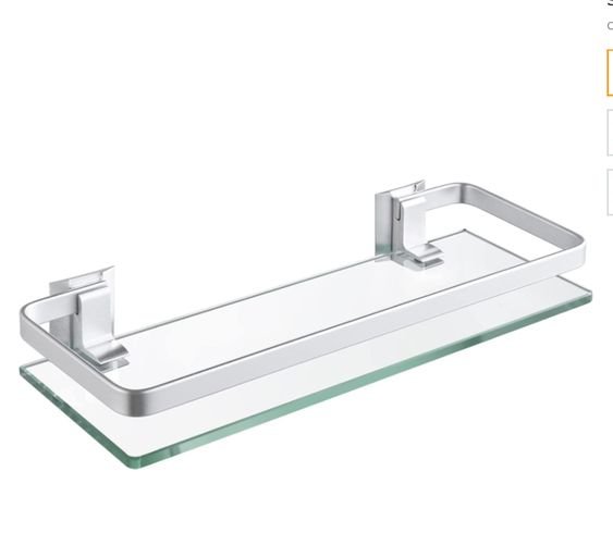 une étagère de douche/salle de bain . Le niveau supérieur est une étagère en verre dépoli de forme rectangulaire avec