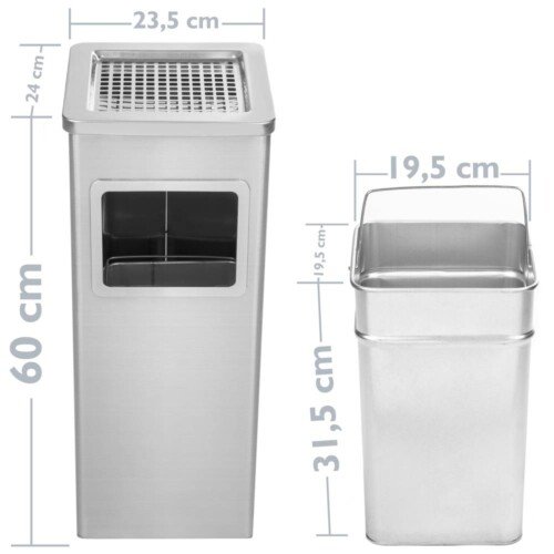 Poubelle rectangulaire avec cendrier en acier inoxydable