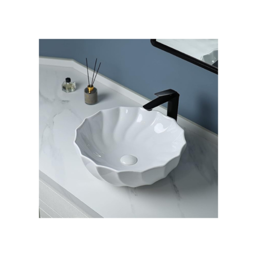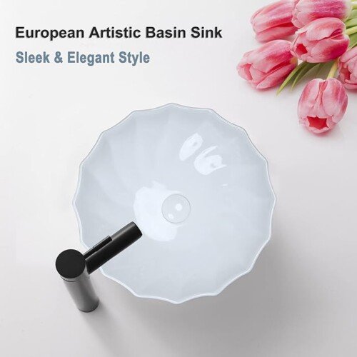 - Évier de salle de bain en forme de lotus, à poser, de forme ronde et unique.
